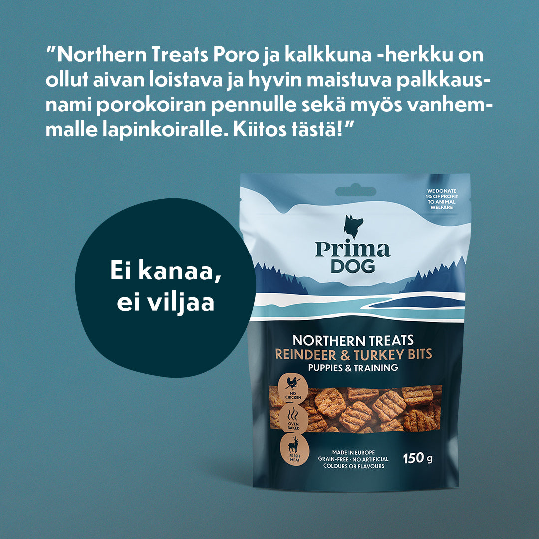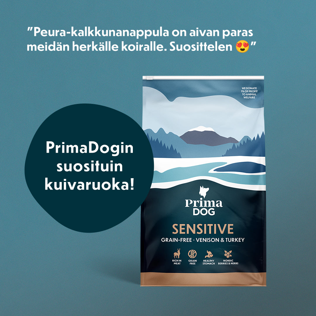 PrimaDog ammentaa inspiraationsa pohjoismaisesta luonnosta ja elämäntavasta. Koiran hyvä elämä on meillä PrimaDogilla aina etusijalla, ja mielestämme koiran hyvinvointi lähtee ruokakupista.