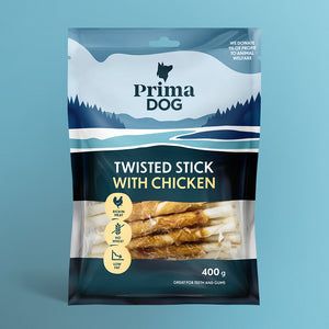 Houkutteleva kanakääreellä päällystetty kierretikku pysäyttää koiran hetkeksi herkuttelemaan. Kanapurutikku on erittäin vähärasvainen, mutta sisältää runsaasti proteiinia.
