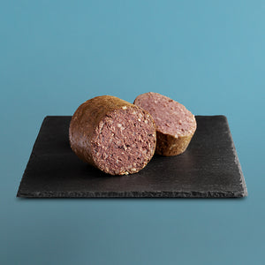 PrimaDogin vehnätön Riista & Riisi -koiranmakkara on niin metsästys- kuin kotikoirankin lihaisa täysravinto. Mehevä riistamakkara toimii sekä treeneissä että ruokakupissa. Koostumukseltaan kiinteää makkaraa on helppo leikata siivuiksi tai makupaloiksi. 800 gramman makkarasta riittää helposti pienemmälle koiralle ruokaa useammallekin ruokintakerralle, kun taas isolle koiralle se on kätevä pilkkoa kerralla tarjolle.