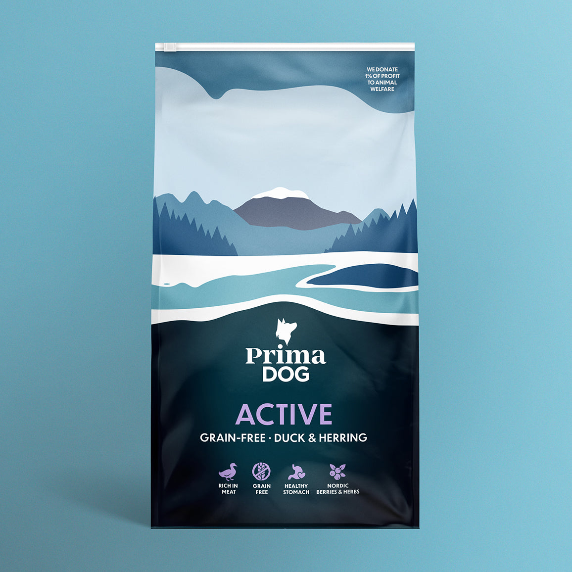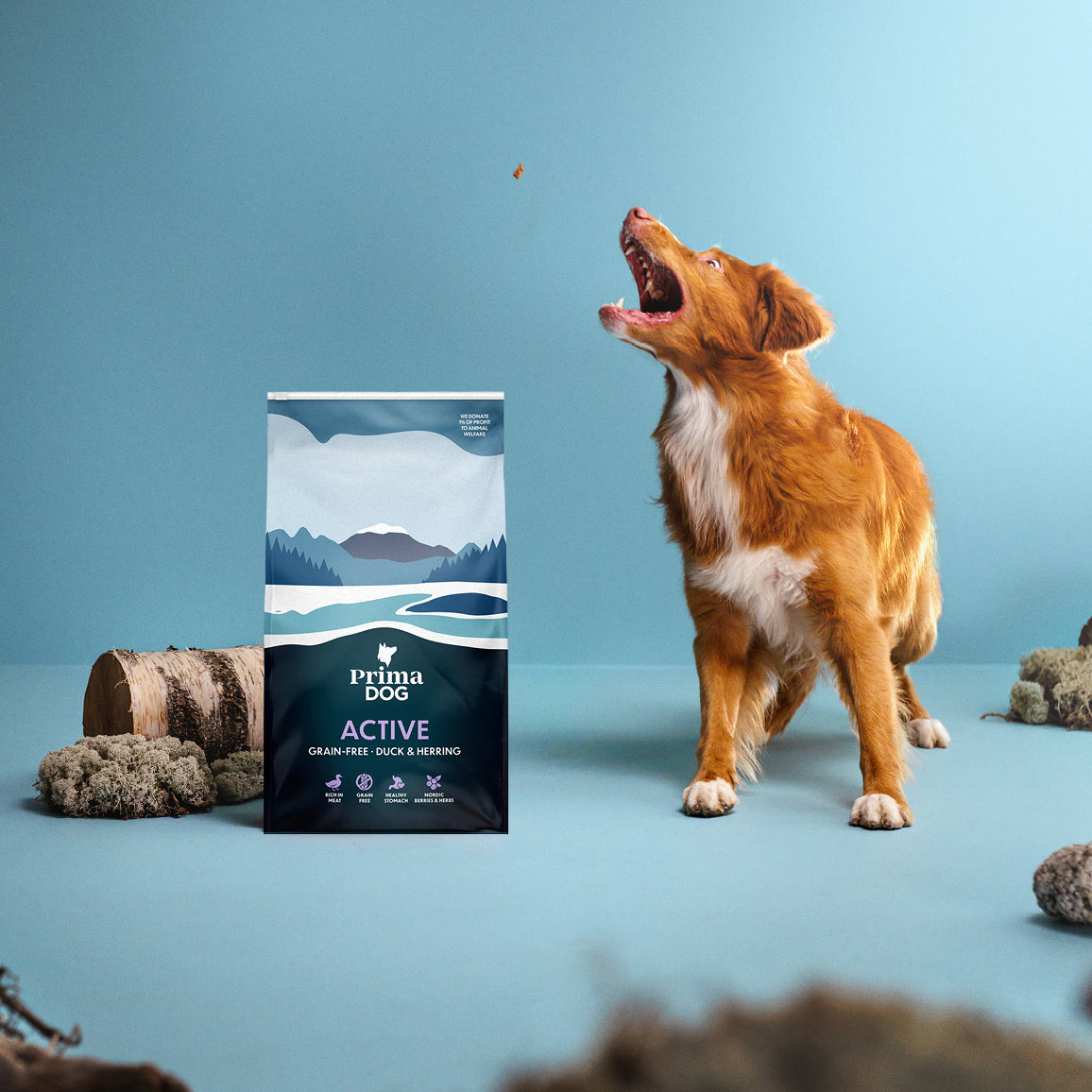 Aktiivinen koira tarvitsee kunnossa pysyäkseen myös runsaasti proteiinia ja rasvaa. PrimaDog Active Ankka & Silli -täysravinnon hyvin siedetyistä eläinperäisistä rasvoista ja proteiineista koira saa helposti ja nopeasti hyödynnettyä tarvitsemansa energian. Reseptiä on rikastettu pohjoisen marjojen ja yrttien superfood-mixillä.